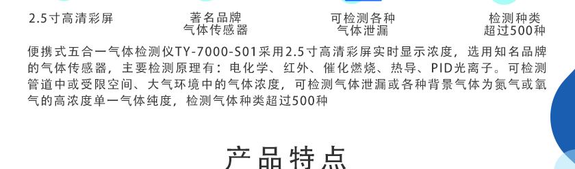 采用2.31寸高清彩屏實時顯示濃度,選用知名品牌的氣體傳感器,主要檢測原理有:電化學(xué)、紅外、催化燃燒、熱導(dǎo)、PID光離子。可檢測管道中或受限空間、大氣環(huán)境中的氣體濃度,可檢測氣體泄漏或各種背景氣體為氮氣或氧氣的高濃度單一氣體純度,檢測氣體種類超過500種。