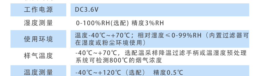 -40℃~+70℃ ,選配高溫采樣降溫過濾手柄或高溫高濕度預(yù)處理系統(tǒng)可檢測 800℃ 的煙氣濃度 |