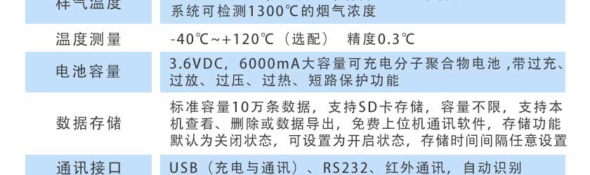 -40℃~+70℃,選配高溫采樣降溫過濾手柄或高溫高濕度預處理系統(tǒng)可檢測1300℃的煙氣濃度 |