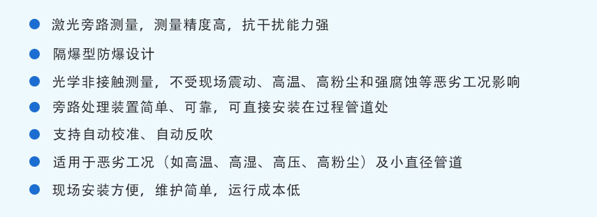 (1)激光旁路測量,測量精度高,抗干擾能力強