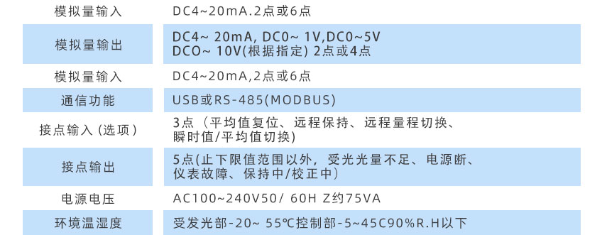 • 在線紅外氣體分析儀 TY-6300 在線紅外氣體分析儀TY-6300采用自主知識產權的NDIR非分光紅外技術,主要用于測量CO、CO2、CH4、C3H8、SO2、NO等氣體的體積濃度及熱值。適用于鋼鐵、化工、煤氣化、生物氣化、節能監測、能效測評等領域,測量焦爐煤氣、高爐煤氣、轉爐煤氣、混合煤氣、發生爐煤氣、生物燃氣等可燃氣體不同成分的體積濃度和熱值。