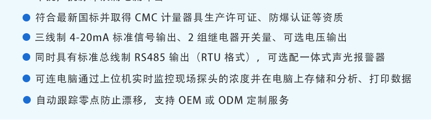 采用進(jìn)口催化燃燒傳感器和微控制器技術(shù),帶2.5寸高清彩屏實(shí)時(shí)顯示,無(wú)聲光+視覺(jué)報(bào)警,現(xiàn)場(chǎng)多種氣體濃度 24 小時(shí)連續(xù)在線監(jiān)測(cè)及溫濕度的測(cè)量,適用于各種環(huán)境中的可燃?xì)怏w濃度檢測(cè),響應(yīng)速度快,測(cè)量精度高,穩(wěn)定性和重復(fù)性好,整機(jī)性能居國(guó)內(nèi)領(lǐng)先水平。儀器具有多種超強(qiáng)的電路保護(hù)功能,可防止錯(cuò)接電源、反接電源、電源短路、電源不穩(wěn)、電源與信號(hào)錯(cuò)解等,導(dǎo)致的儀器損壞。