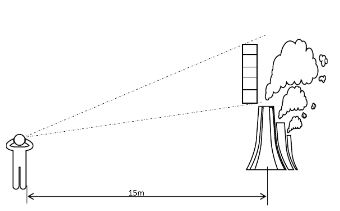 a. 應(yīng)在白天進(jìn)行觀測(cè),觀察者與煙囪的距離應(yīng)足以保證對(duì)煙氣排放情況清晰地觀察。林格曼煙氣黑度圖安置在固定支架上,圖片面向觀察者,盡可能使圖位于觀察者至煙囪頂部的連線上,并使圖與煙氣有相似的天空背景。圖距觀察者應(yīng)有足夠的距離,以使圖上的線條看起來融合在一起,從而使每個(gè)方塊有均勻的黑度,對(duì)于絕大多數(shù)觀察者這一距離約為15m。