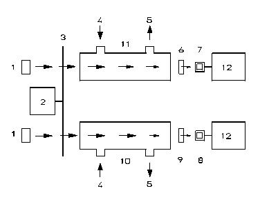 紅外光源 ( 1 ),是通過電子加熱,并且發出寬帶紅外光。光束被旋轉的葉片( 切光器 )( 3 ),間斷切斷,產生交變光。切光馬達 ( 2 ),是由石英振蕩器控制。因此,紅外光的切光頻率是相當穩定的。紅外光通過有樣品氣和載氣混合氣流通過的測量池 ( 10,11 )時,被吸收。 而紅外光被吸收的強度與氣體濃度有關,紅外光束通過測量池后,經過濾光片( 6,9 ),只有紅外光中窄帶通過。所選擇的中頻帶波長,是對氣體測量呈最大吸收的波長,通過濾光片后,光束強度是根據紅外池中氣體濃度來決定的,最后紅外光束照射到紅外檢測器 (7,8 )上,得到與光強成正比關系的電信號。