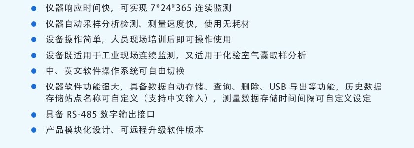 (7)儀器響應(yīng)時間快,可實(shí)現(xiàn)7*24*365連續(xù)監(jiān)測。