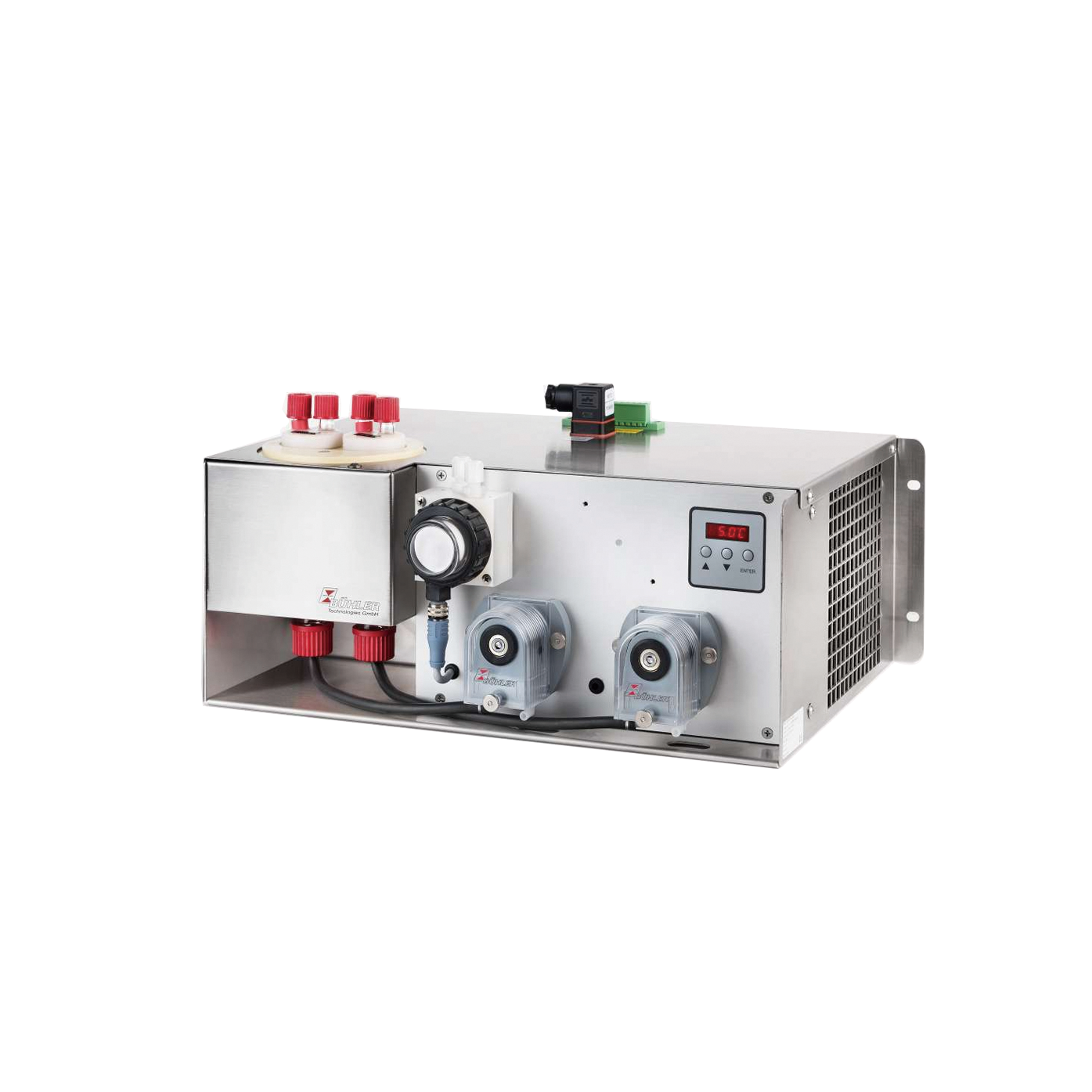 在氣體預(yù)處理中,處理樣氣時(shí),會(huì)積累冷凝物。當(dāng)濕潤(rùn)樣氣被冷卻時(shí),總是會(huì)產(chǎn)生冷凝物。一方面,當(dāng)在樣氣管線中導(dǎo)致冷橋時(shí),冷凝是不受歡迎的。另一方面,有必要沉淀水分,以便保護(hù)分析儀的測(cè)量元件不受損壞和/或測(cè)量結(jié)果穩(wěn)定。由于在抽吸模式下,樣氣通常由分析系統(tǒng)輸送,必須通過(guò)泵抽送除去冷凝水。為此,眾所周知的蠕動(dòng)泵尤其合適。應(yīng)系統(tǒng)要求,保護(hù)樣氣系統(tǒng)免受外部空氣侵?jǐn)_,并提供因使用的軟管材料的對(duì)抗往往極具腐蝕性的冷凝物的高持久性。