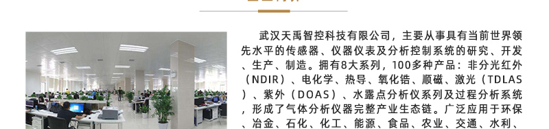 • 原位式激光氣體分析系統 天禹智控的激光過程氣體分析系統的測量探頭由發射單元和接收單元組成,發射單元由人機界面、激光器驅動模塊、中央處理模塊、半導體激光器和精密光學元件等器件組成;接收單元由光電傳感器、信號處理模塊、電源模塊和精密光學元件等部分組成;吹掃單元由過濾器、減壓閥和穩流裝置等組成;正壓控制模塊采用隔爆設計,內置壓力傳感、信號處理、電源控制和信息顯示等模塊。