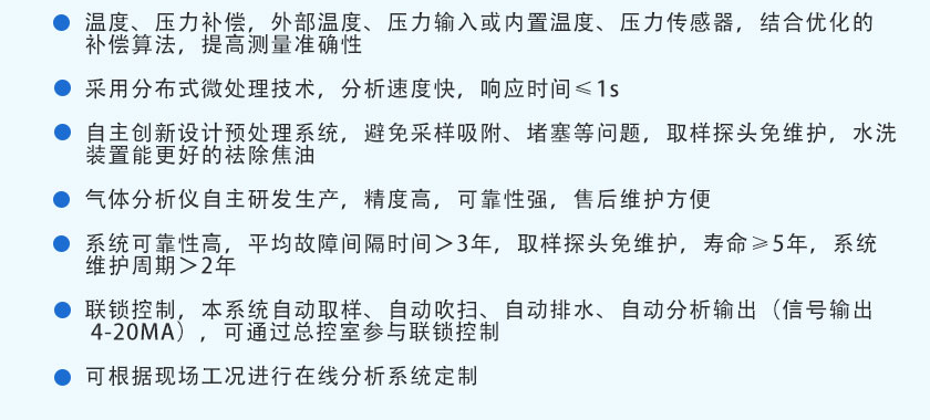 用國際先進的TDLAS激光技術,主要用于測量各種氣體中的HF、HCL、O2、CO、CO2、H2O、O2、NH3、CH4?等氣體體積濃度及熱值。
