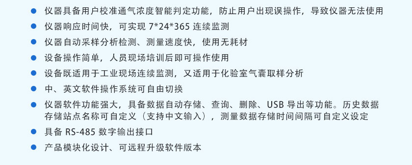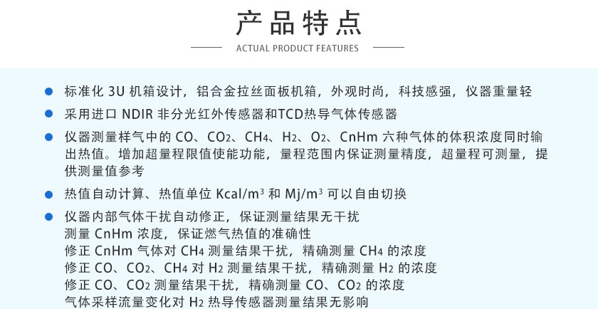 CO、CO2、CH4、CnHm :NDIR非分光紅外 H2:TCD熱導(dǎo), O2:ECD電化學(xué) |