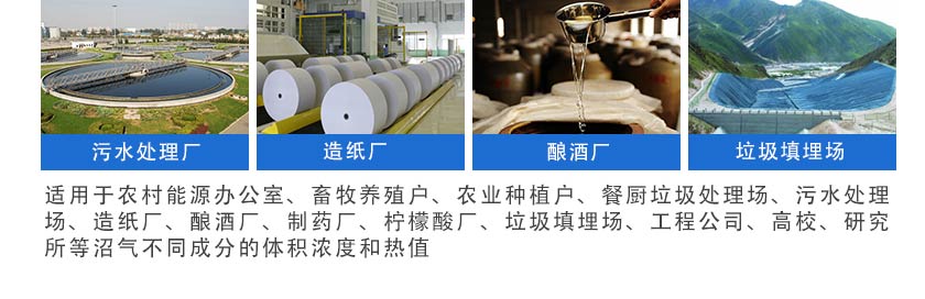 采用國際先進的NDIR非分光紅外技術和ECD電化學技術,主要用于測量各種厭氧發酵工藝和實驗中的沼氣、生物燃氣中的CO、CO2、CH4、H2、O2、H2S等六種氣體體積濃度。 適用于農村能源辦公室、畜牧養殖戶、農業種植戶、餐廚垃圾處理場、污水處理場、造紙廠、釀酒廠、制藥廠、檸檬酸廠、垃圾填埋場、工程公司、高校、研究所等檢測厭氧發酵工藝和實驗中的沼氣、生物燃氣中的氣體體積濃度和熱值。