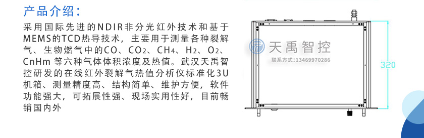 采用國際先進的NDIR非分光紅外技術和基于MEMS的TCD熱導技術,主要用于測量各種裂解氣、生物燃氣中的CO、CO2、CH4、H2、O2、CnHm?等六種氣體體積濃度及熱值。武漢天禹智控研發的在線紅外裂解氣熱值分析儀標準化3U機箱、測量精度高、結構簡單、維護方便,軟件功能強大,可拓展性強、現場實用性好,目前暢銷國內外,適用于裂解氣、生物氣化等可燃氣體不同成分的體積濃度和熱值。