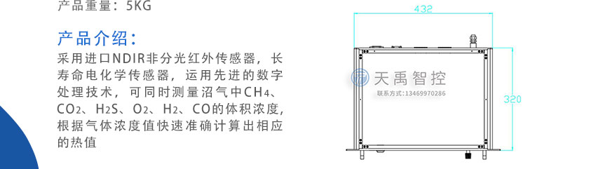 采用進(jìn)口NDIR非分光紅外傳感器,長壽命電化學(xué)傳感器,運(yùn)用先進(jìn)的數(shù)字處理技術(shù),可同時測量沼氣中CH4、CO2、H2S、O2、CO、H2的體積濃度,根據(jù)氣體濃度值快速準(zhǔn)確計算出相應(yīng)的熱值。