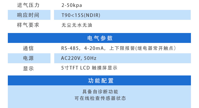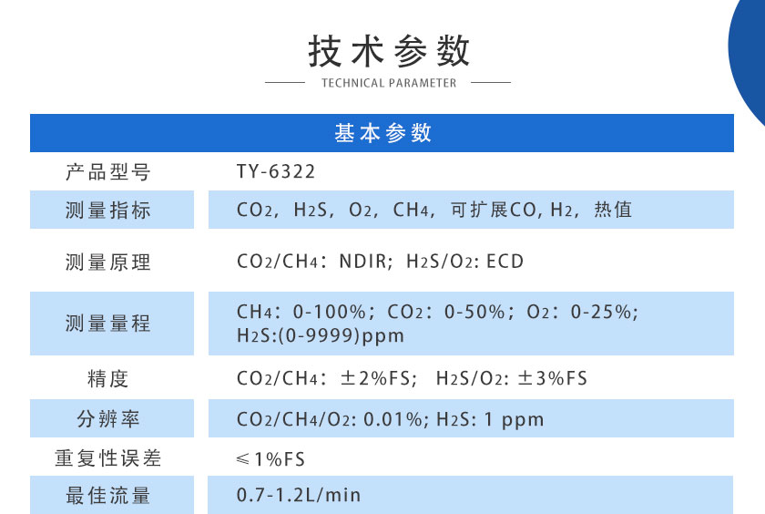 CO、CO2、CH4、:NDIR非分光紅外 H2:TCD熱導(dǎo), O2、H2S:ECD電化學(xué) |