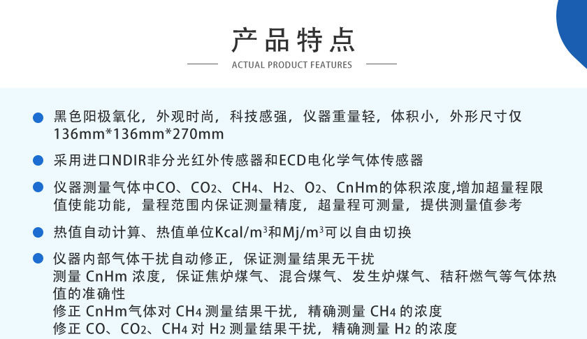 CO、CO2、CH4、CnHm :NDIR非分光紅外;H2:TCD熱導;O2:ECD電化學;