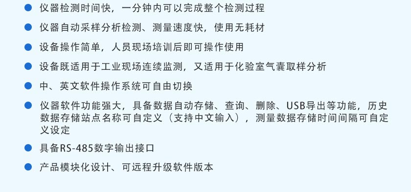 針對國內外環保在線監測分析自主研發的氣體分析產品,該分析儀基于紫外差分吸收光譜技術(DOAS)、NDIR非分光紅外技術和電化學技術,能夠測量HC、SO2、NO、NO2、CO、CO2、O2等氣體濃度。