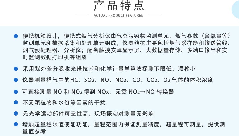 該分析儀基于紫外差分吸收光譜技術(shù)(DOAS)、NDIR非分光紅外技術(shù)和電化學(xué)技術(shù),能夠測(cè)量HC、SO2、NO、NO2、CO、CO2、O2等氣體濃度。